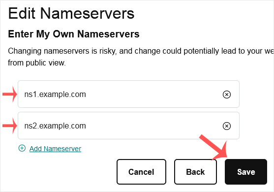 6. Enter your nameservers in the text fields and click on Save.
