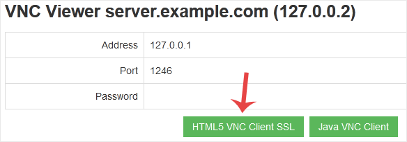 4. The new VNC page will open. Click on HTML5 VNC Client SSL(Recommended) or Java VNC Client.